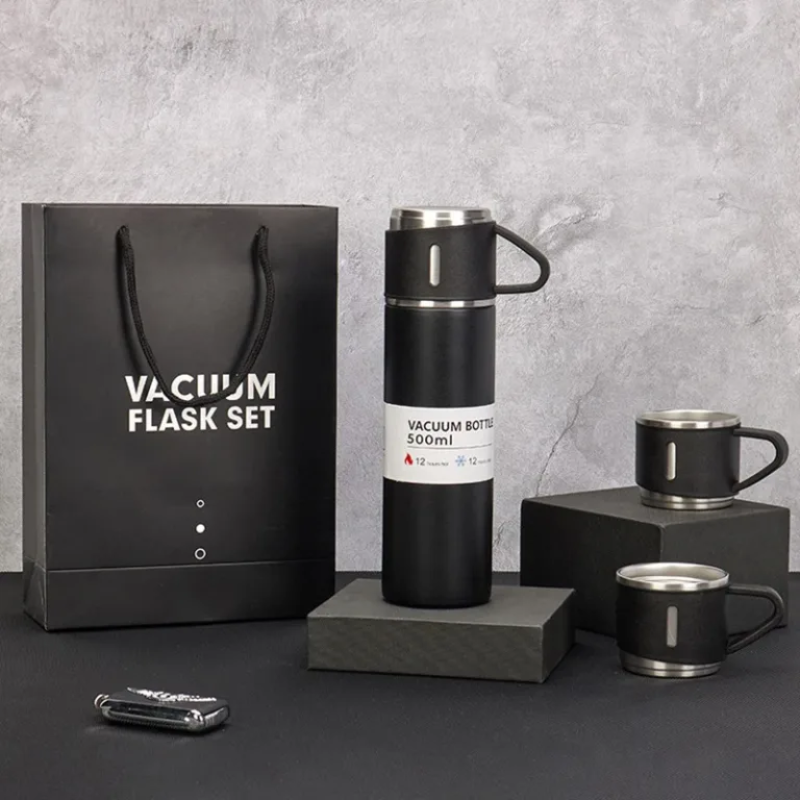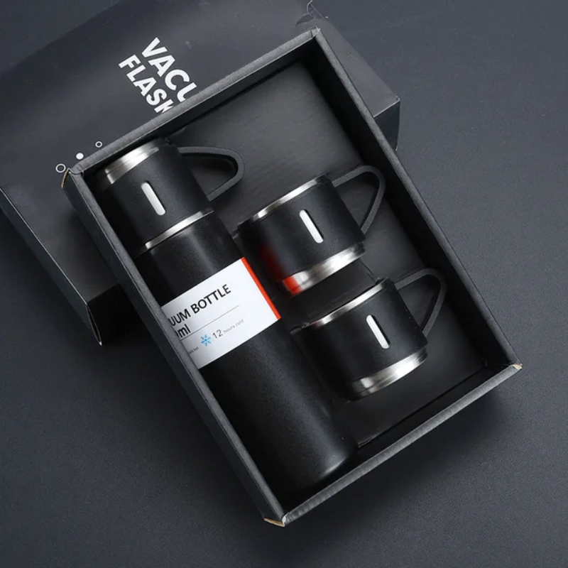 500ml Stainless Steel Travel Flask Set (With 3 Cups)