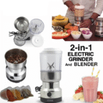 Upgrade your kitchen with the Nima 2-in-1 Electric Grinder & Blender, a compact yet powerful appliance designed for everyday use. Whether you’re grinding coffee, nuts, or blending fruits for fresh juice, this versatile machine offers reliable performance and convenienceโall in one sleek, stainless steel design.