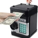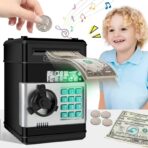 Improve The Child’s Property safety Consciousness: “my own safe” guarding their own things. It can be used to store toys, jewelry, baseball cards, etc. insert coins into the top of the money bank and you insert bills into the side, just use the safe as a piggy bank. Password Safe Cash Box: Enter the 4 digit password(default: 0000,Changable passwords as you like), the green light will be on, the ATM can be opened. . If you enter the wrong password, the red light will turn on and the sound of “PLEASE TRY AGAIN” will prompt you (you can not open it, if the password it’s wrong)Automatic Roll Money ATM Bank: Put the paper money on the scroll, it can be rolled into the machine automatically.(But it doesn’t work if the paper is too old or too soft)Environmental protection materials: ABS plastic, No odor, anti-aging, durable and durable, adults and kids all can use it, large inside capacity, can help adults hold some private small items. High-capacity: Can store 600 pieces of coins or 100 pieces of paper money. interesting & funny, a must item for child or gifts, greatly help you to develop a good habit of saving money.