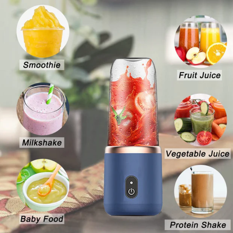 Enjoy fresh and healthy drinks anytime with the Portable USB Personal Mini Juicer Cup. Designed for convenience and performance, this compact handheld blender is perfect for making smoothies, juices, and shakes on the go. Powered by a rechargeable USB battery, it eliminates the need for bulky appliances, making it ideal for travel, office, gym, or outdoor use.