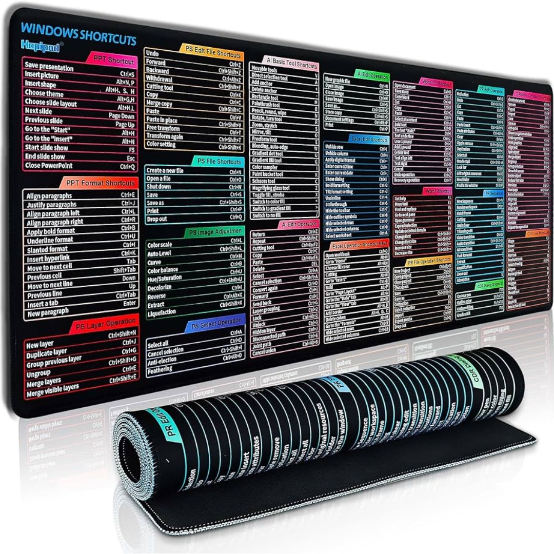 • Durable & Non-Slip Design: This Windows Shortcut Mouse Pad features stitched edges to reduce fraying. The non-slip rubber base helps keep it securely in place, and the water-resistant fabric allows for easier maintenance.